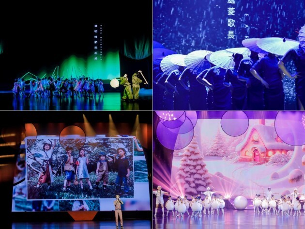 鼓声领衔开场,以「春夏秋冬」贯穿节目编排,演绎四季交替的节拍,在灯光不断闪烁和切换,绚丽的场景下,师生们共同设计完成的服饰,释放着自己的灵感和活力,将舞台化作创意时装秀T台,生动展示季节文化,舞台之上每个人都是独一无二的主角。