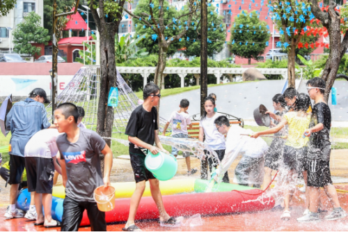 夏日怎少得了与水狂欢,孩子们无拘无束,畅快地泼洒欢乐祝福,快门记录下了初心楼前这幸福的一刻。