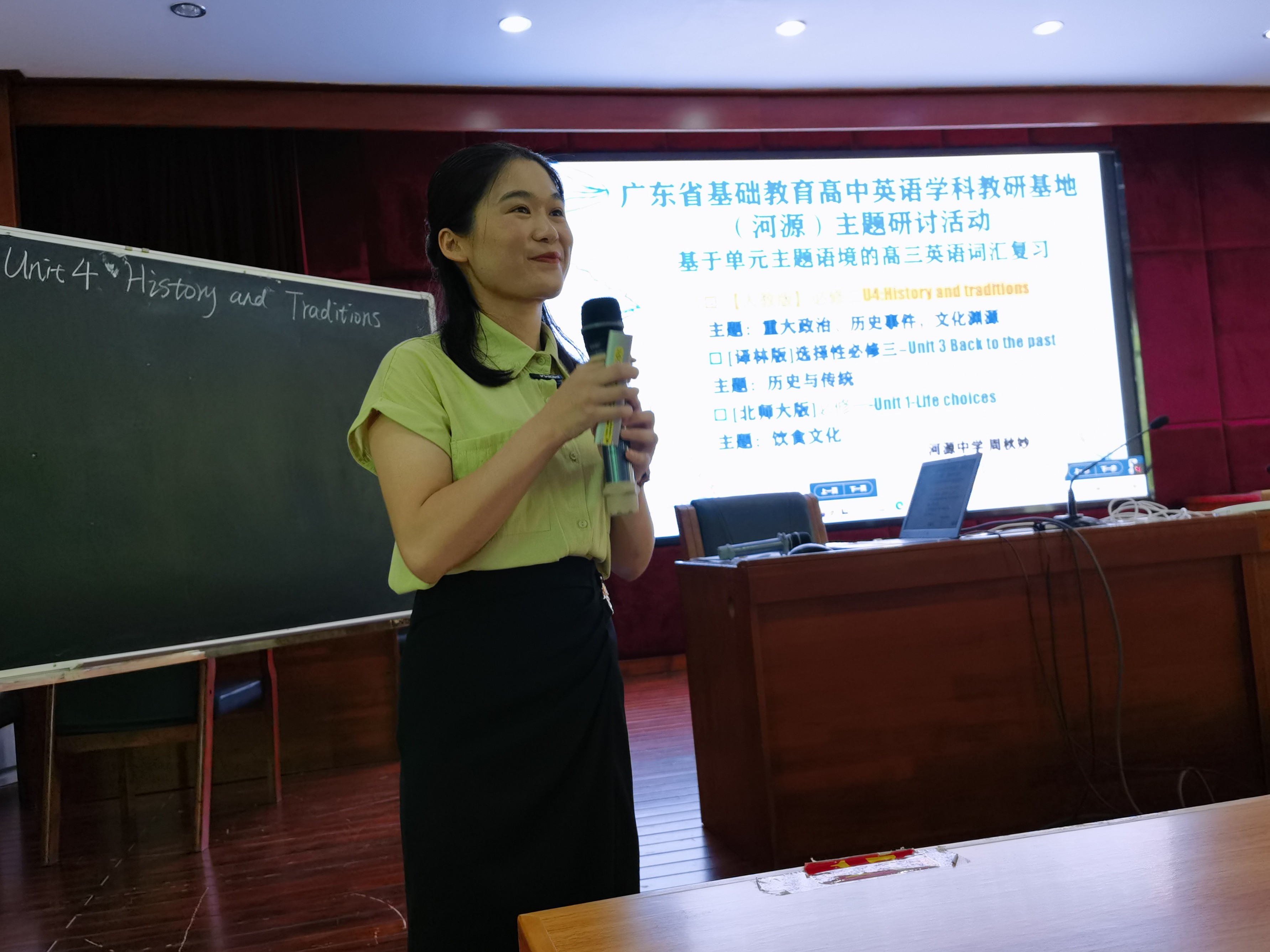 其中,来自河源中学的周秋妙老师带来了一节基于单元主题的高三英语词汇复习课,周老师以必修第二册《Unit4 History and Traditions》为授课内容,依托科大讯飞AI听说课堂,实现了普通教室场景下的人机对话教学,开启了人工智能AI与课堂教学相结合的教学新模式。