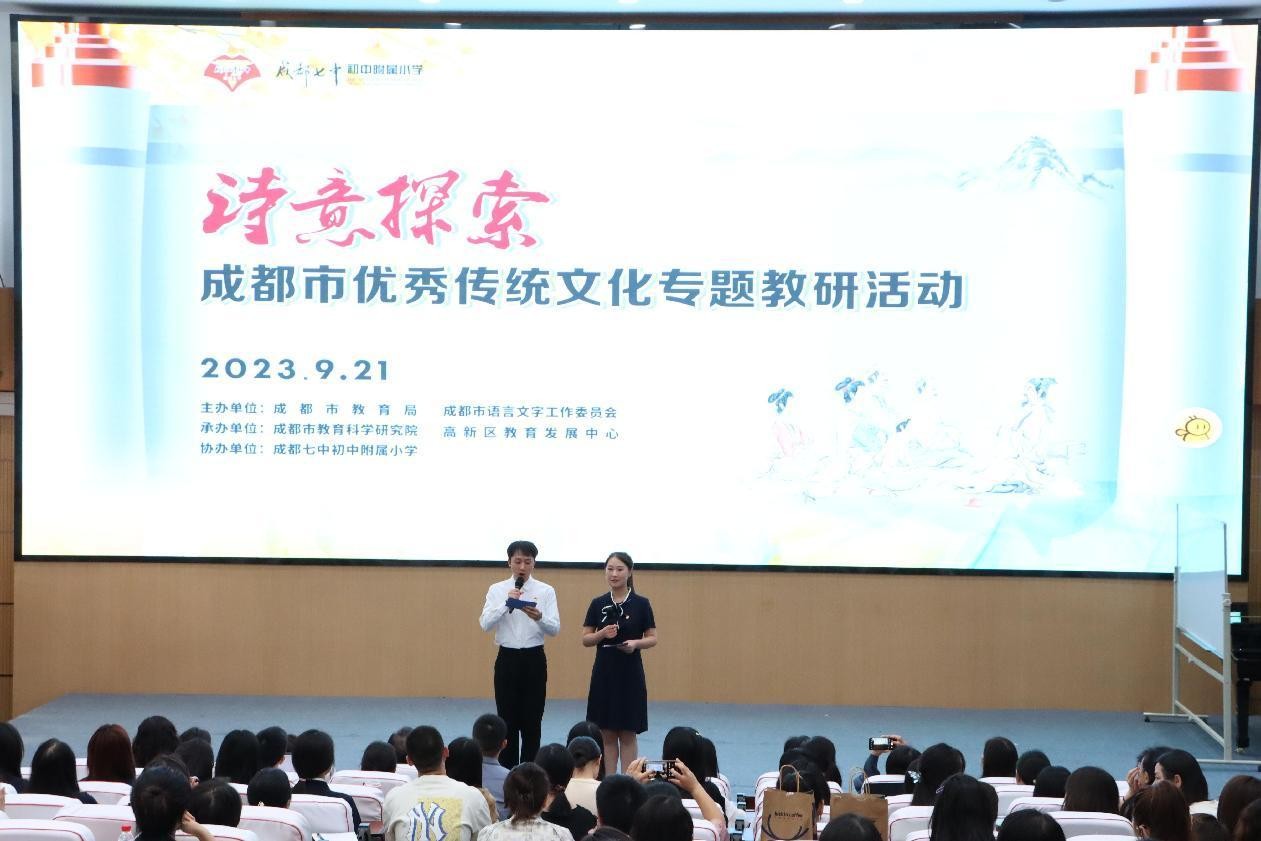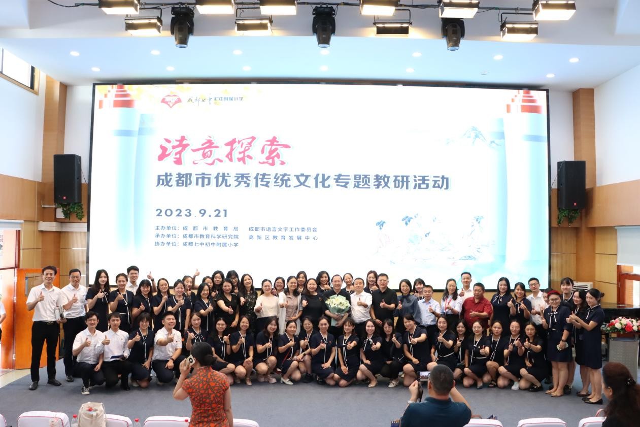 为加大国家通用语言文字推广力度,传承弘扬中华优秀语言文化,推进我市中华优秀传统文化进课堂,9月21日,由成都市教育局和成都市语言文字工作委员会主办,成都市教育科学研究院和成都高新区教研发展中心承办的“诗意探寻”专题教学研讨活动在成都七中初中附属小学隆重举行。