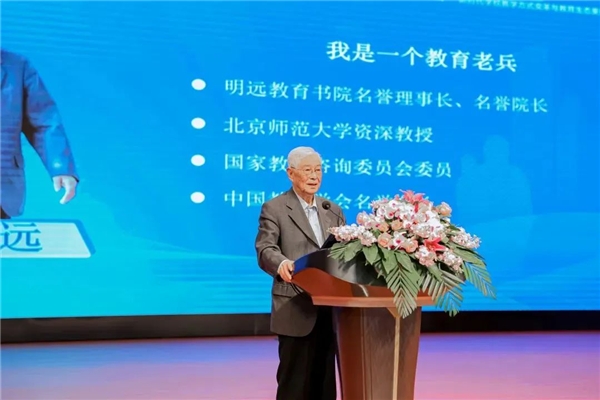 明远教育论坛是北京明远教育书院一年一度举办的教育行业高端会议。恰逢顾明远先生从教75周年之际,主办方邀请了众多国内权威专家学者、一线教育工作者参与会议。据悉,明远教育书院名誉理事长、名誉院长顾明远教授,明远教育书院理事长、清华大学教育研究院院长石中英,明远教育书院学术委员、杭州师范大学原校长林正范,明远教育书院院长、北京师范大学教育学部教授郭华,南京师范大学心理学院教授、博士生导师傅宏,明远教育书院学术委员、中国教育学会副秘书长罗滨,江苏省教科院(省教研室)初中数学教研员徐德同,全国著名特级教师窦桂梅、刘可钦、薛法根、俞正强,无锡市教育局局长宋新春,无锡市新吴区教育局局长张英等教育领域权威均出席论坛。
