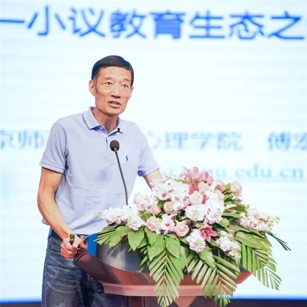 南京师范大学心理学院教授傅宏教授基于教育心理学进行了题为《育人者的选择:关爱与惩戒》的专题讲座。他以传统教育现象为例,指出当下教育生态的缺失,即分数崇拜和教育惩戒。进而傅宏教授辩证地讨论为了惩戒和关爱之间的关系,呼唤大家要“回归人本,重构生态”,指出教育要以“关爱为本、奖惩为要”。