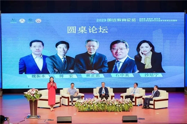 专题讲座结束后,由沙培宁主持的圆桌论坛邀请了石中英院长、林正范院长、傅宏教授、魏振水副总裁与来自全国各地的一线的教育工作者们近距离对话。