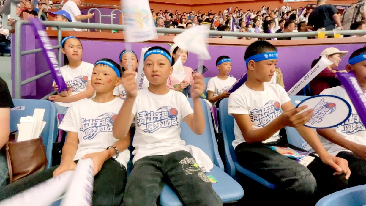 孩子们观看亚运篮球比赛
