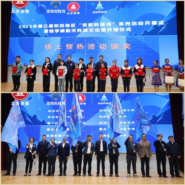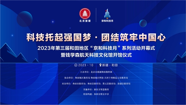 10月15日,由北京市援疆和田指挥部主办的2023年第三届和田地区“京和科技月”系列活动开幕式暨钱学森航天科技文化馆开馆仪式在和田市德润教育园区隆重举行。