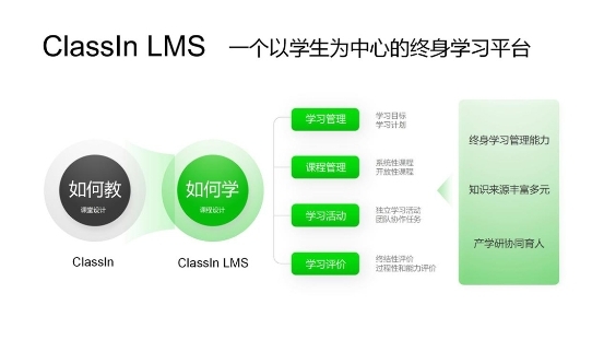 响应这一需求,翼鸥推出ClassIn LMS学习管理系统。据了解,ClassIn LMS支持多种课程类型的实施、多种教学模式的实践,以及以学习者为中心的全流程、全维度的学习管理,进而赋能学习者(核心)素养的达成和终身全人的发展。