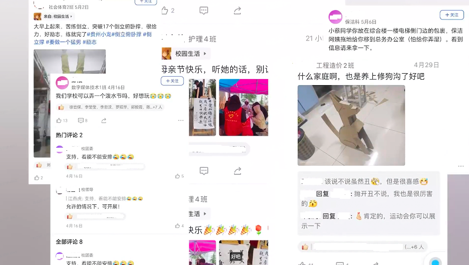 “学校是一个很抽象的概念和实体,学生对学校的认知实际上都来自于每天跟他接触的辅导员、老师。”换位思考下,建立学校和同学之间的有效沟通,十分必要。校领导看到动态后回复、点赞,跟同学们形成良性互动,慢慢地传达学校想要树立的观念、理念和思想,比如同学们应该成为什么样的人,具有什么样的职业素养。