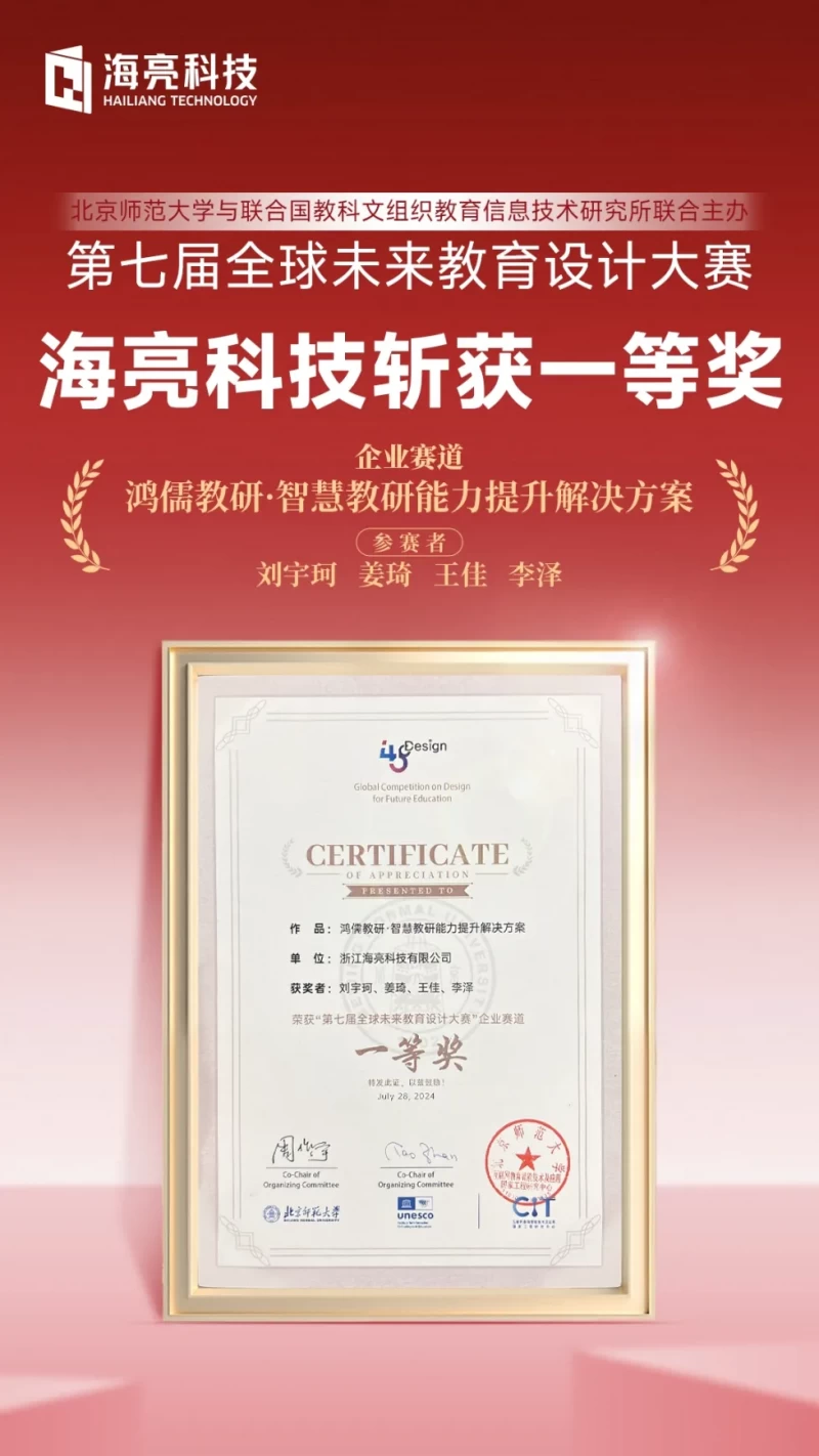 “‘鸿儒教研’背后的专家团队代表着海亮科技对教育的尊重”,这是教育部教育技术与资源发展中心标准处处长刘强在“第七届全球未来教育设计大赛”中对“鸿儒教研·智慧教研能力提升解决方案”的充分肯定。