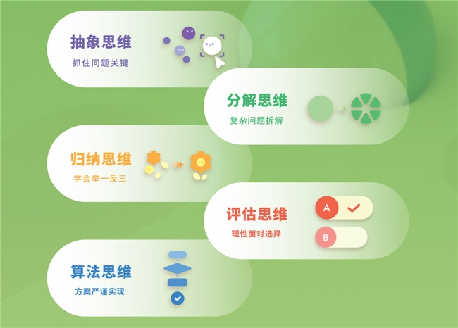 猿编程作为计算思维领域的引领者,专注于帮助青少年提升科技素养,培养计算思维,激发创新潜能。2023年,猿编程团队自主研发了国内第一套《计算思维》课程,将计算思维精炼为五大核心能力:抽象思维、算法思维、分解思维、归纳思维和评估思维。