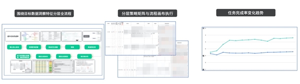 基于学习意愿、学习能力等综合变量的数据完成用户分层后,选取典型客户层,神策数据与粉笔根据每个类型用户数据洞察画像特征,明确各分层运营目标,制定运营干预策略及不同场景话术,共创完成学情分析几类典型客户策略矩阵。