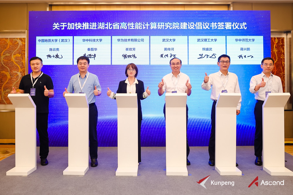 8月11日,2023东湖算力与大数据创新大会成功召开,在大会的湖北科教融合创新人才发展专题分论坛上,武汉大学、华中科技大学、武汉理工大学、华中师范大学、中国地质大学(武汉)与华为共同倡议成立湖北省高性能计算研究院。研究院将紧紧围绕国产自主高性能计算建立应用生态的主轴,充分发挥华中地区科教高地、武汉超算中心和人工智能计算中心的优势,打造跨界协同的创新生态系统,助推湖北省算力产业高质量发展。