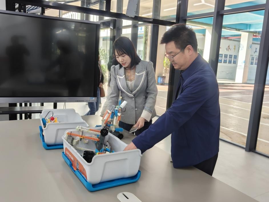 10月22日,十堰市科技教育学会会长、外国语学校校长郭峰,十堰市科技教育学会秘书长马吉星一行到高新学校考察、交流学校的科创教育。