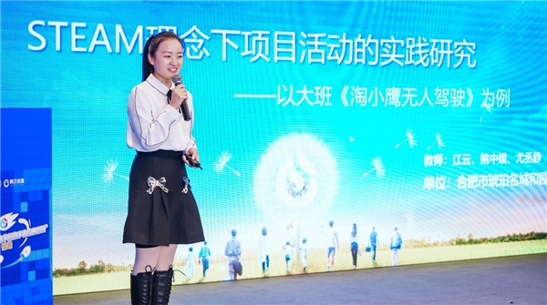 当日,山东省学前教育行动计划先进个人、青岛市实验幼儿园党支部书记、园长王正伟,江苏无锡经济开发区教师发展中心学前教研员顾燕婷,合肥市琥珀名城和园幼儿园教研组长尤丞静分别进行了题为《数字化背景下的智慧幼儿园建设》、《人工智能支持下的学前儿童绘本阅读模式探索》、《STEAM理念下项目活动的实践探究》的应用案例分享。