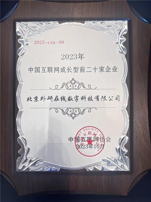 2023年上半年,随着宏观环境向好、重点应用加速落地、互联互通持续推进,我国互联网企业发展势头有望持续向好。在此背景下,为进一步展现我国互联网企业风采、塑造互联网行业中国品牌形象,中国互联网协会组织开展中国互联网企业综合实力研究工作。凭借在企业成长、创新能力与社会责任三方面的出色表现,北京外研在线数字科技有限公司(以下简称“外研在线”)强势入选“2023年中国互联网成长型前二十家企业”。