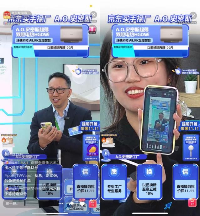 值得一提的是,此次探厂直播,京东采销还邀请到了品牌BOSS亲临直播现场,A.O.采销史密斯品牌也为京东用户提供了专属优惠,包括直播专享券、京东PLUS优惠券、大额优惠券、以旧换新至高立减10%、直播间下单前两百名加赠A.O.史密斯美容花洒等一系列福利。此外,在直播间下单的顾客还可以享受到价同11.11的优惠,实现了“11.11不用等”,消费者可以提前抢到心仪的产品。