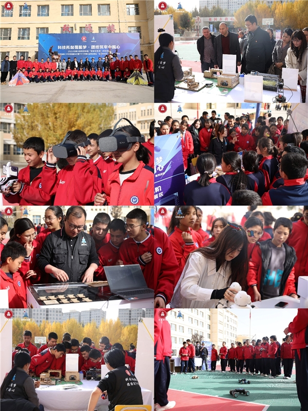 在当日的洛浦县第二中学校园嘉年华中,近三千名中小学生在活动现场一同观摩体验航空航天科技、元宇宙虚拟现实、人工智能、3D打印、机器人科技等系列科技互动项目,沉浸式感受科技创新的智慧和神奇。