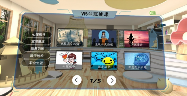 疏导解压、应激训练、心理测评三大类VR心理资源供体验者体验。