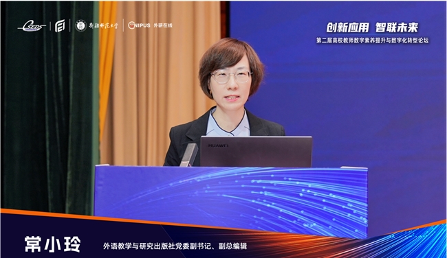 外语教学与研究出版社党委副书记、副总编辑常小玲在开幕致辞中指出,外研社是有45年发展历程、综合实力在全国排名第三的国家一级出版社,深度推动教育与数字融合。外研社的数字化转型旗舰外研在线,通过“测—评—培—教—研—赛”六位一体的数字化赋能教师发展解决方案,为高校提升教师数字素养找到具象的抓手,并将汇聚合力、持续发力,充分发挥在教育科技、教育资源、教育研究、教育培训等领域的整合优势,服务高校发展,提升教育质量,共同为建设教育强国不懈努力。