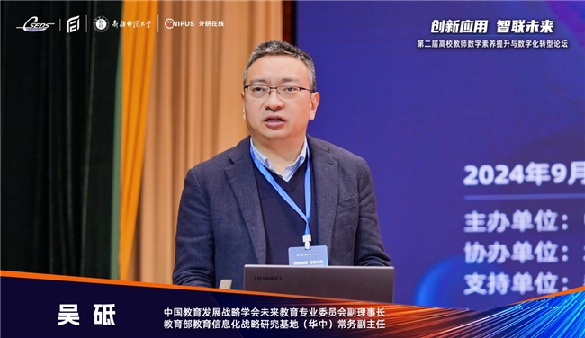 教育数字化是我国开辟教育发展新赛道和塑造教育发展新势能的重要突破口。为进一步推进国家教育数字化战略行动,推动数字化赋能教师发展行动,深入探讨人工智能赋能下的教育教学创新与发展、教师数字素养评价与提升,由中国教育发展战略学会未来教育专业委员会、新疆师范大学联合主办,北京外研在线数字科技有限公司协办,教育部教育信息化战略研究基地(华中)支持,“创新应用 智联未来——第二届高校教师数字素养提升与数字化转型论坛”于9月28日在新疆师范大学成功举办。