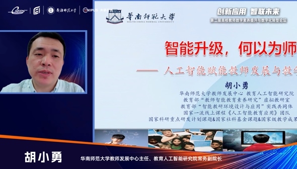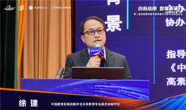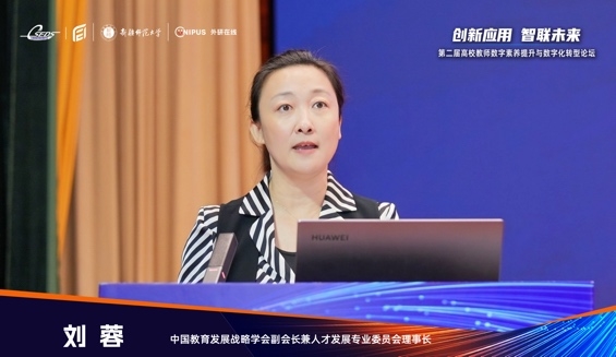 中国教育发展战略学会副会长兼未来教育专业委员会理事长、武汉理工大学党委副书记、校长杨宗凯以线上视频形式发表致辞。他表示,我国教育数字化战略行动走向“集成化、智能化、国际化”的“3I”,为教育数字化深化发展指明了方向。应加快培养大批适应AI时代的复合型教师,推动热心从教、精心从教、善于从教、终身从教的高水平教师队伍建设。他希望就教师职前教育与职后衔接、数字技术与学科教学融合等问题进行深入思考,为建设高素质教师队伍、建设教育强国做出努力和贡献。