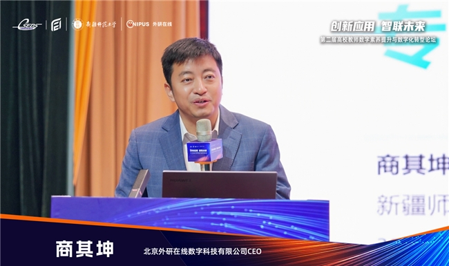 北京外研在线数字科技有限公司CEO商其坤就“AI赋能高校教师数字素养提升与专业发展”进行介绍。他认为,数字化是进入数字时代的重要途径,教师数字素养是数字时代教师的必备素养,教师的数字素养与技能的提升是教育数字化战略成败的关键,加强教师的数字素养提升,关乎教师、教育和国家的发展。他介绍,外研在线积极打造高校教师发展与数字素养提升AI赋能解决方案,通过研发iTeach教师数字素养AI平台(以下简称“iTeach”)、推出AI教师助手,开展数字化、国际化、专业化、特色化的教师培训,推动AIGC技术融入教学赛事,以及构建包含课题项目、期刊专栏、学术会议、教师社区的智慧生态,全方位赋能教师数字素养与数字化胜任力提升。