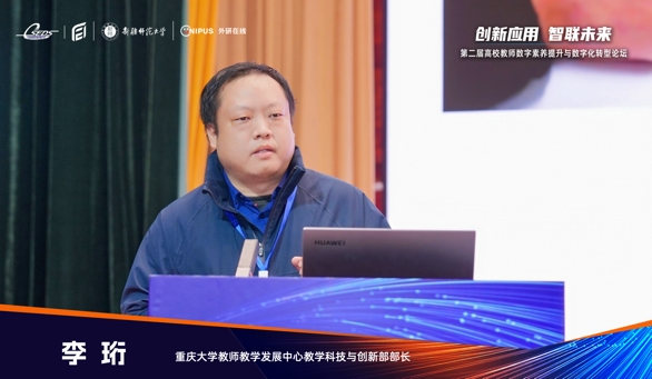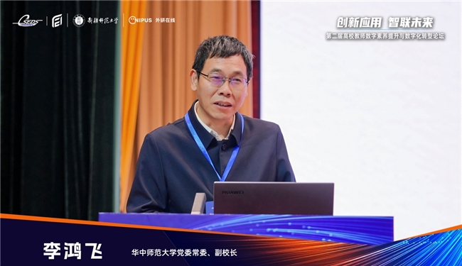华中师范大学党委常委、副校长李鸿飞带来“AI赋能课堂教学创新与教师专业发展”,他详细讲述了院校围绕AI发展与数据驱动的课堂教学创新、教师专业发展与AI视角的教研新主题的探索经验,指出华中师范大学通过构建教师专业发展“一体分层自选”的教学服务与支持新模式,打造数据驱动的教师数字素养测评模型与数字素养课程资源库,构建“综合评价、精准督导、多元助推、协同提质”数字驱动的教师专业发展闭环,促进教育长远发展。