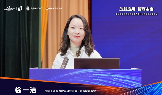 主旨报告由中国教育发展战略学会未来教育专业委员会副理事长,教育部教育信息化战略研究基地(华中)常务副主任吴砥及北京外研在线数字科技有限公司首席内容官徐一洁主持。两位主持人分别结合发言内容提出自身思考,希望更多高校关注教师数字胜任力发展,不断分享探索经验。