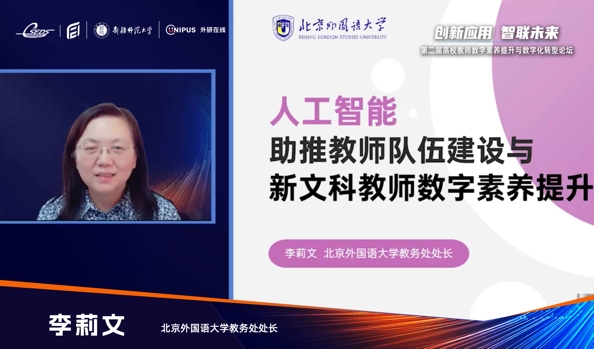 面对教育高质量发展的迫切需求和以人工智能为代表的新一代信息技术变革的挑战,必须把数字素养与胜任力作为教师的必备素养,提升教师数字化教学能力,助推教学质量提升。由新疆师范大学组织部副部长、人事处处长刘蓉及北京外研在线数字科技有限公司教师发展总监陈静主持,大会特设专题论坛,围绕数字技术赋能教师发展进行了深入探讨和实践分享。