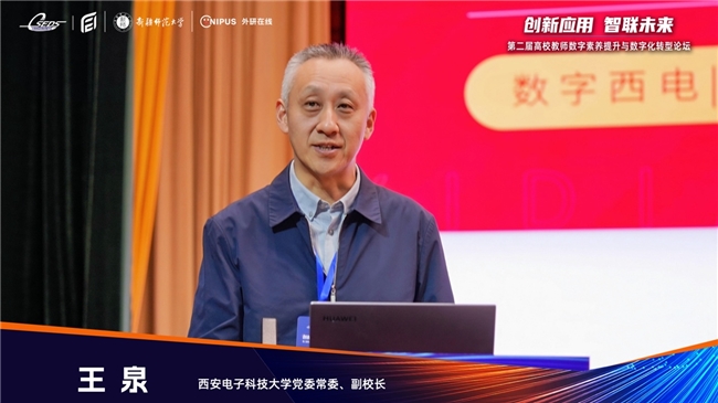 西安电子科技大学党委常委、副校长王泉围绕“数智时代高等教育发展面临的挑战及应对”进行讲解。他指出,数智时代高等教育面临“个性化学习范式”“智能化教授模式”“精准化院校管理”“多元化教育评价”四重挑战,高等教育需重塑教育环境、变革教育模式与教师培训方式,通过构建“AI+教育教学”新模式、创新“双师双空间”教学模式、探索在线智能实验教学模式、推动人机结合与人技结合培训等方式,在助力教师“智能化教”方向展开探索,构筑多位一体的数智化教师教学体系。