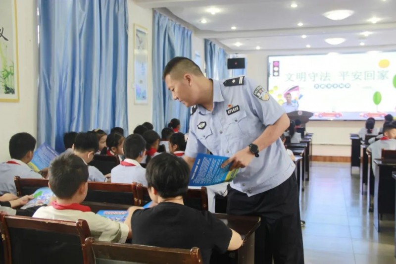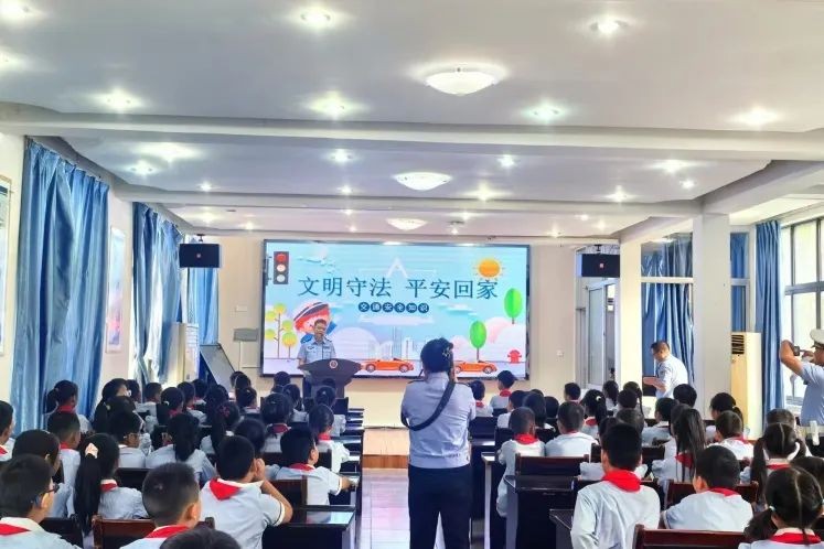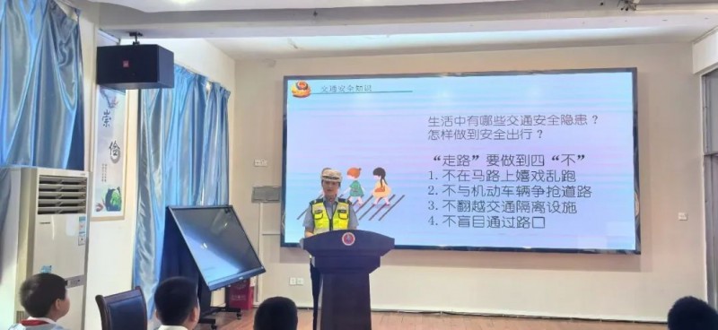 王警官结合实际案例,为学生讲解交通规则,如过马路要走斑马线、红灯停绿灯行、不在马路上嬉戏打闹等。 女子中队齐警官详细讲解了一系列交通安全知识,如系好安全带、戴好头盔等。宣讲过程中还向学生发放了宣传单让同学们将所学的交通安全知识带回家,向家长宣传,共同提高交通安全意识。