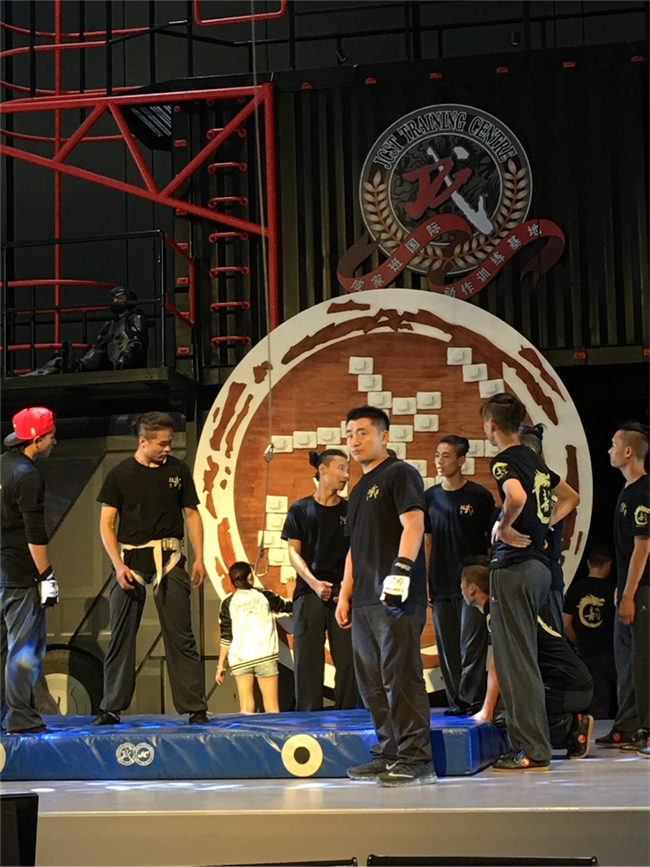(薛精医华在成家班龙韵武艺团表演武术,中间为薛精医华,受访者供图)
