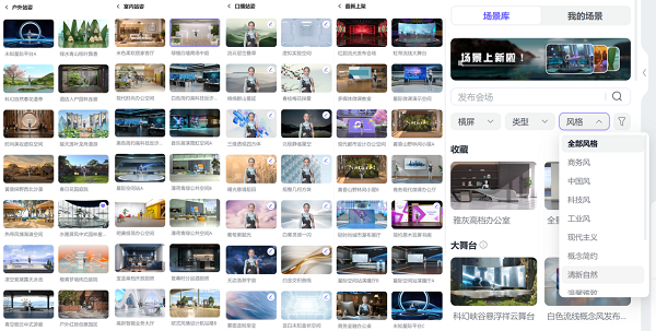 在魔珐有言,视频形式的设计涵盖了横屏、竖屏的数千种不同风格的场景库,如适合语文教学内容的中国风、技术教学的科技风、前沿学科的未来风等,满足不同教育教学的创作需求,还极大地节省了搭建场景或租借场地拍摄所需的时间、金钱和人力成本,让教育资源和产品营销素材的制作更加高效、便捷。