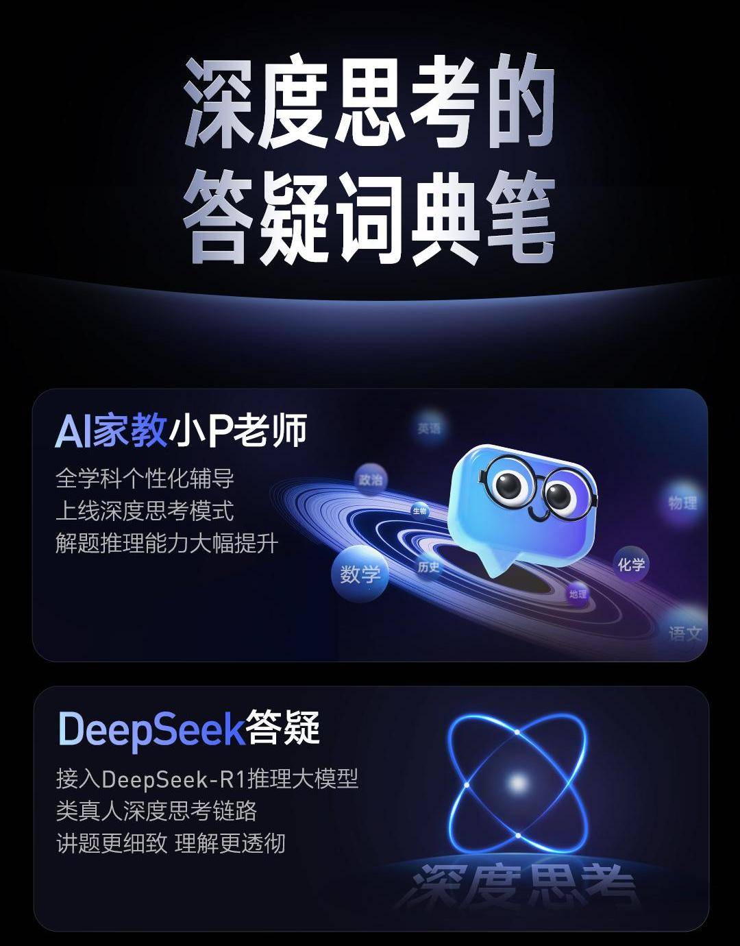 在各行业纷纷拥抱DeepSeek的浪潮之下,教育智能硬件行业率先迎来全新品类!2月18日,网易有道重磅推出学习硬件产品“全面屏答疑词典笔”有道SpaceOne。作为国内首款AI原生学习硬件,有道SpaceOne深度融合DeepSeek-R1推理模型能力,将AI能力与教育场景、知识库优势结合,解锁学科难题深度讲解新方式,以大模型时代智能硬件的全新形态,为用户带来了超越真人老师的答疑辅导体验。