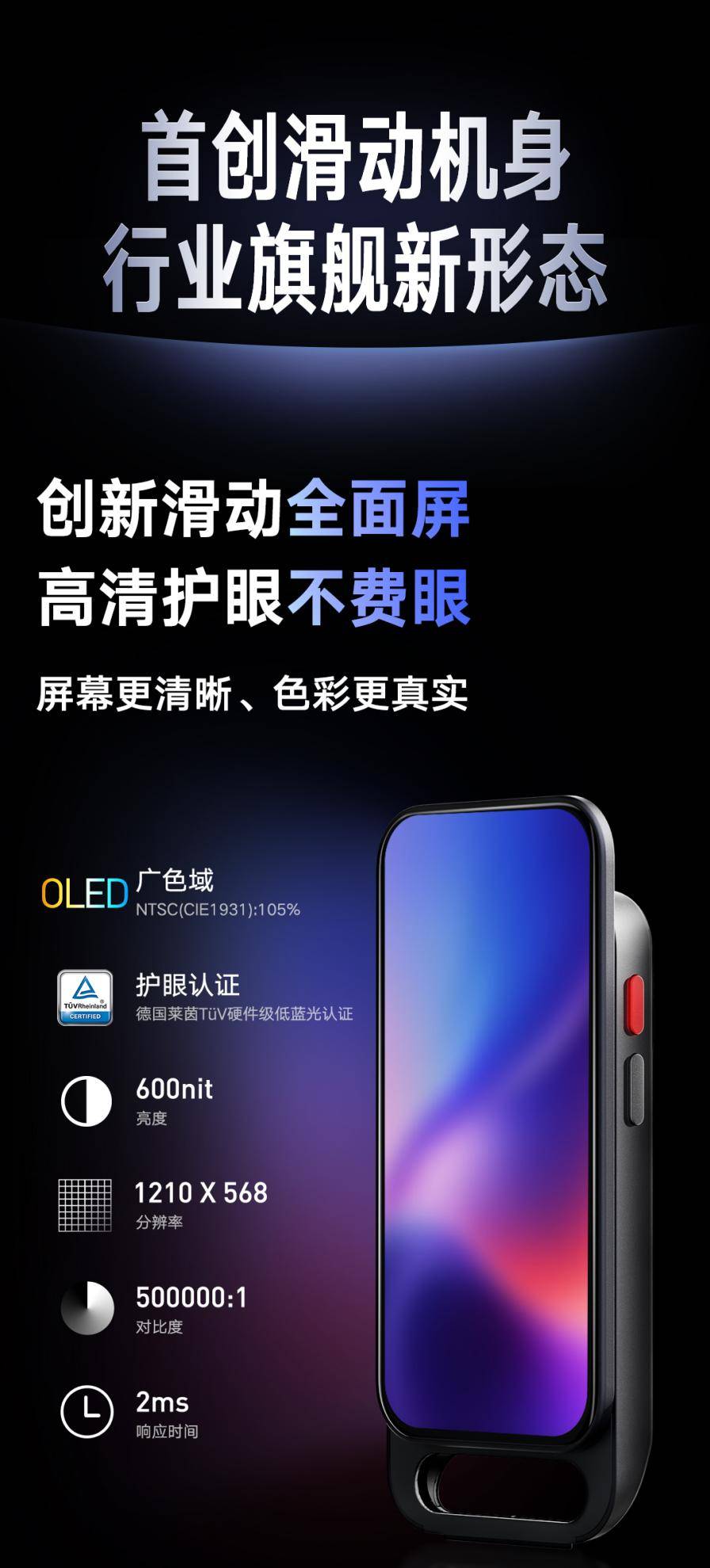 除了出色的“软实力”,有道SpaceOne在硬件上也体现了十足的用心。首创滑动机身,同时配置获得德国莱茵护眼认证的4.4英寸全面屏,实现竖屏显示效率提升350%。此外,3.6厘米宽的隐藏式超大滑动笔头可以进一步拉开扫描视窗,让信息录入更高效。在交互方面,800万像素AI摄像头可满足扫描、拍照等形式,搭配语音问答,学生使用起来更加方便顺畅。